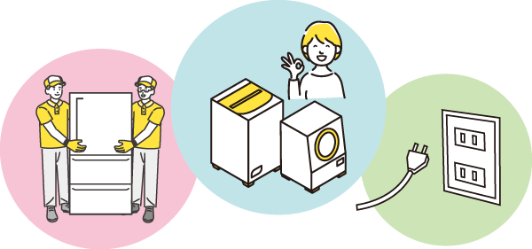 エディオンなら、冷蔵庫や洗濯機などの大型家電の設置料が基本無料(特殊配送除く)のため、搬入・設置に不安がある方でも安心して「一人暮らし 家電セット」をお選びいただけます。