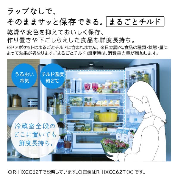 日立 670L 6ドア冷蔵庫 バイブレーションモーブグレー RGXCC67XH