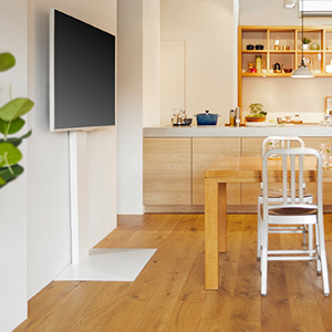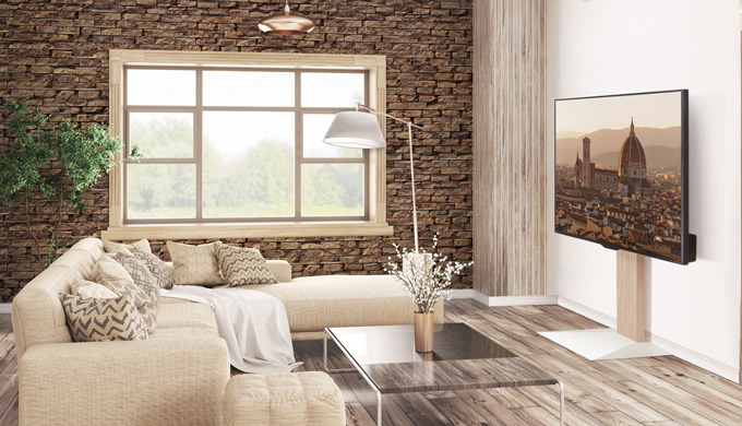 壁寄せテレビスタンドは、高さ調節ができる機種が多数ありますので、視聴に最適な高さでテレビをお愉しみいただけます。
