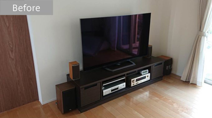 足元がすっきりし、圧迫感も激減!ソファのどの位置からもゆったりとテレビを見れるようになりました。