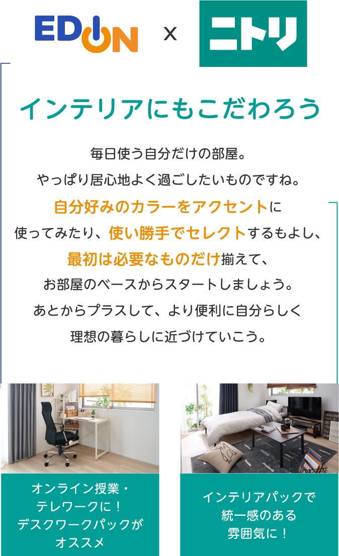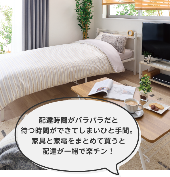 家電を選ぶ時間がなかったり、デザインに統一感が欲しいと考えていたりする場合は、迷わず家電パックで!基本の家電を価格重視やデザイン重視、機能重視などのテーマ別にセレクトできるので、数ある家電の中から選ぶ手間も省けます。