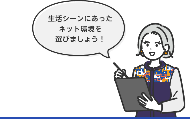 オンライン授業にテレワークや動画視聴、今やネット環境は必需品。賃貸などの契約時に一緒に契 約してしまうのも便利ですが、どうせなら料金や使い勝手も考えてしっかり見直してはいかがでしょうか?速度遅延のない安定した通信なら高速光通信、家でも外でもネット環境を楽しめるモバイルルーター、工事不要で即日開通が可能なホームルーターなど生活シーンに合わせて選ぶのがオススメです。スマホのキャリアに合わせて選ぶと月々のスマホ代がお得になったりすることも。自活するなら節約も重要なので、窓口などで相談してみるといいですよ。