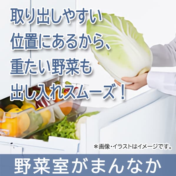 大容量の野菜室で約10日間、新鮮に保存※できる「Wシャキシャキ野菜室プラス」。